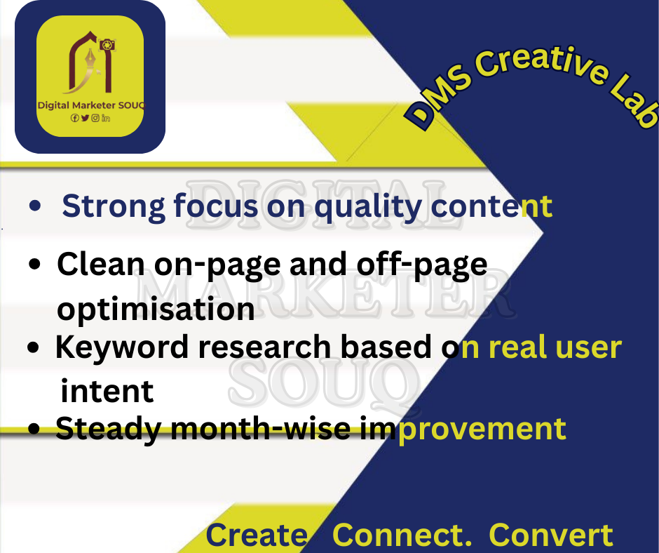 Digital Marketer Souq’s unique SEO service blends data, creativity, and user-focused optimisation. Each action is planned with intention. As a result, your brand stands out naturally and grows without pressure. The entire process stays easy to understand, and the progress remains visible at every stage.